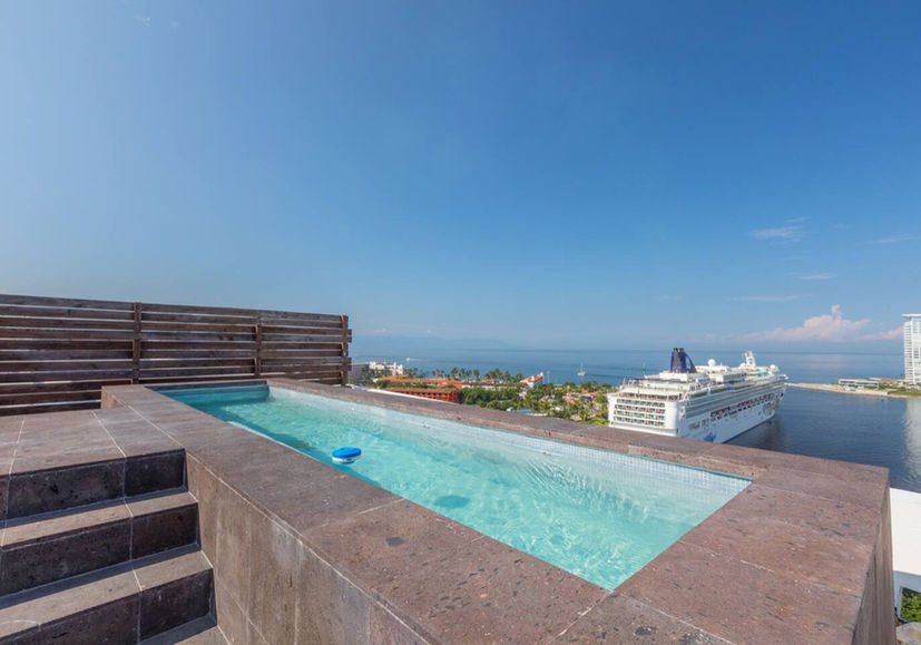 This amazing 2BD DECK12 PENTHOUSE is located directly in front of the Cruise Ships Marina, next to Sams Club and Walmart and the popular Gallerias Shopping Plaza. Deck 12 penthouse unit has a view of the cruise ship marina and the entire Bay of Banderas . Enjoy the amazing views and sunsets from the privacy of your large private balcony. Situated in the center of everything makes this condo an ideal location to walk to the beach, restaurants, bar, shopping plazas or head to downtown Puerto Vallarta. The unit comes private garage parking and 24/7hr security. Huge lap pool on the main floor with spacious areas plus your own private pool rooftop on this amazing penthouse roof. This Penthouse with its amazing views and prime location makes this an ideal vacation rental assuring your vacation to tropical Puerto Vallarta one you will remember for years to come!