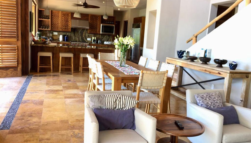 The bedroom suites offer panoramic views of the Pacific Ocean and the mountain areas surrounding the small surfing village of Sayulita. Delight in the tropical breezes offered on the private verandas, as they change from sunrise to sunset. Each of these suites are equipped with air conditioning, HD satellite TV and high speed internet. Two of of the suites have outdoor showers overlooking the magnificent vegetation surrounding the property. Accommodates up to 8 people.